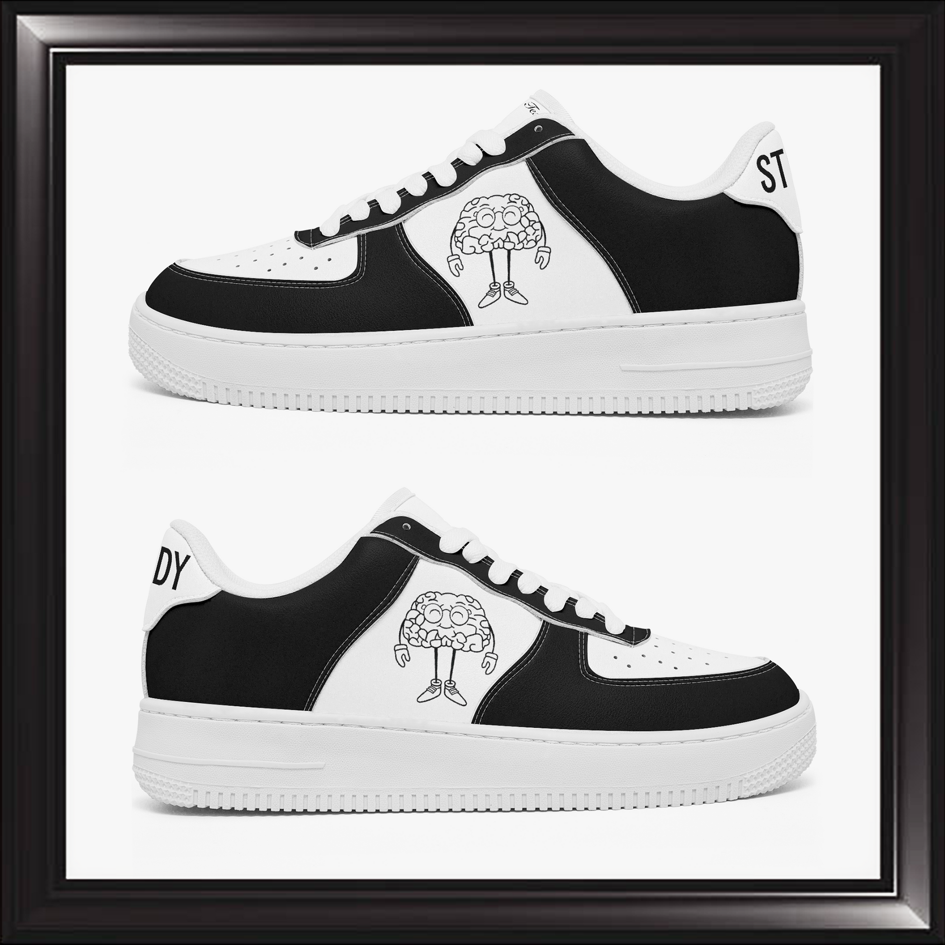 The study buddy relationship begins as a transaction - shared flashcards and caffeine-fueled library marathons—where whispered debates over calculus proofs or Kantian ethics accidentally become your most intimate conversations. You know each other in highlighters and yawns: the way they chew pens when stressed, their exact coffee order at 2 a.m., and how their eyes light up explaining a concept they finally grasp. When finals end, you realize your quiet synergy outlasts the syllabus - less about romance, more about finding a mirror for your mind in someone who speaks your language of focus, frustration, and fragile hope. If this speaks to you then the Study Buddy Sneaker is the right choice. You can customize the sneakers with individual names on each tongue. This model is designed for unisex.